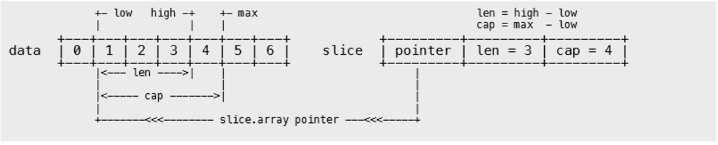 }Slice底层依赖于数组来实现,有一个数组指针,指向实际存储数据的数组。