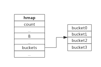 buckets unsafe.Pointer // 2^B个桶对应的数组指针