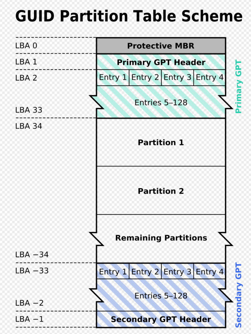 此外,GPT的信息尤为重要,所以会备份到磁盘的末尾的34LBA中。