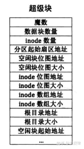超级块(Super Block)描述整个分区的文件系统信息,如inode/block的大小、总量、使用量、剩余量,以及文件系统的格式与相关信息。超级块在每个块组的开头都有一份拷贝(第一个块组必须有,后面的块组可以没有,取决于备份策略)。