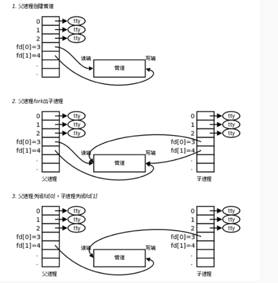 匿名管道:最常见的形态就是我们在shell操作中最常用的”|”。它的特点是只能在父子进程中使用,父进程在产生子进程前必须打开一个管道文件,然后fork产生子进程,这样子进程通过拷贝父进程的进程地址空间获得同一个管道文件的描述符,以达到使用同一个管道通信的目的。