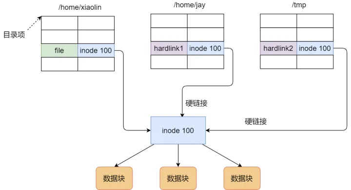 创建一个硬链接文件,指向了另一个文件的inode,由于inode是Ext文件系统的特有格式,所以是无法跨文件系统的。由于多个目录项都是指向一个 inode,那么只有删除文件的所有硬链接以及源文件时,系统才会彻底删除该文件。相当与是建立了引用,引用计数,为0才删除。