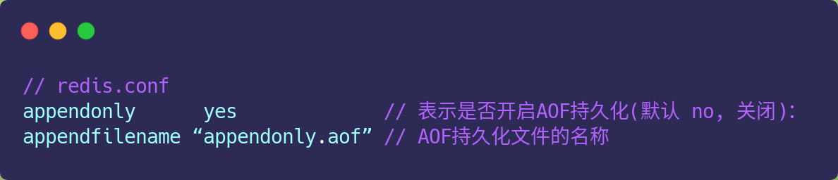 在 Redis 中 AOF 持久化功能默认是不开启的,需要我们修改 redis.conf 配置文件中的以下参数:
